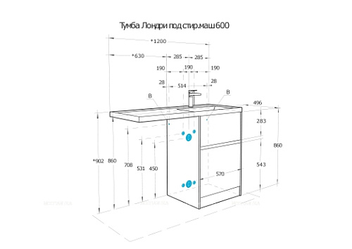 Aquaton 1A266901LHDR0 Лондри Тумба с раковиной 60 Дуб Рустикальный без фасада