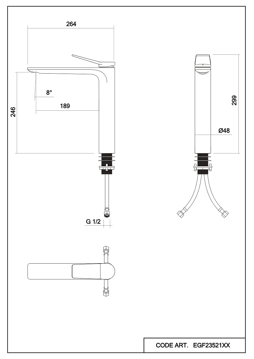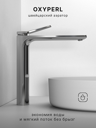 Смеситель Abelsberg Intensa в высокой версии — это мощная визуальная доминанта и функциональный акцент в ванной комнате. Вытянутый корпус с характерными изгибами и выразительной геометрией подчёркивает индивидуальность интерьера, особенно в сочетании с раковинами-чашами. Смеситель легко справляется с ролью центрального элемента, при этом оставаясь удобным в использовании. Продуманные пропорции и плавные переходы форм создают ощущение динамики и архитектурной цельности.