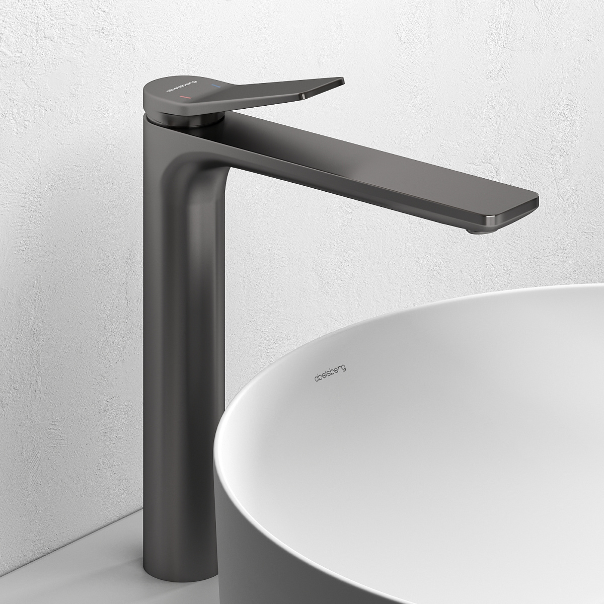 Смеситель Abelsberg Intensa в высокой версии — это мощная визуальная доминанта и функциональный акцент в ванной комнате. Вытянутый корпус с характерными изгибами и выразительной геометрией подчёркивает индивидуальность интерьера, особенно в сочетании с раковинами-чашами. Смеситель легко справляется с ролью центрального элемента, при этом оставаясь удобным в использовании. Продуманные пропорции и плавные переходы форм создают ощущение динамики и архитектурной цельности.