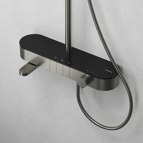 Душевая система Abelsberg Intensa — это выбор для тех, кто не боится выразительности в интерьере. Динамичные линии, продуманные пропорции и мощный визуальный импульс превращают душевую систему в главный акцент ванной комнаты. Интегрированный излив для ванны и круглый тропический душ делают её универсальным решением для повседневного комфорта. Система объединяет стиль и функциональность: каждый элемент продуман до мелочей — от формы переключателя до ощущений от струи воды.