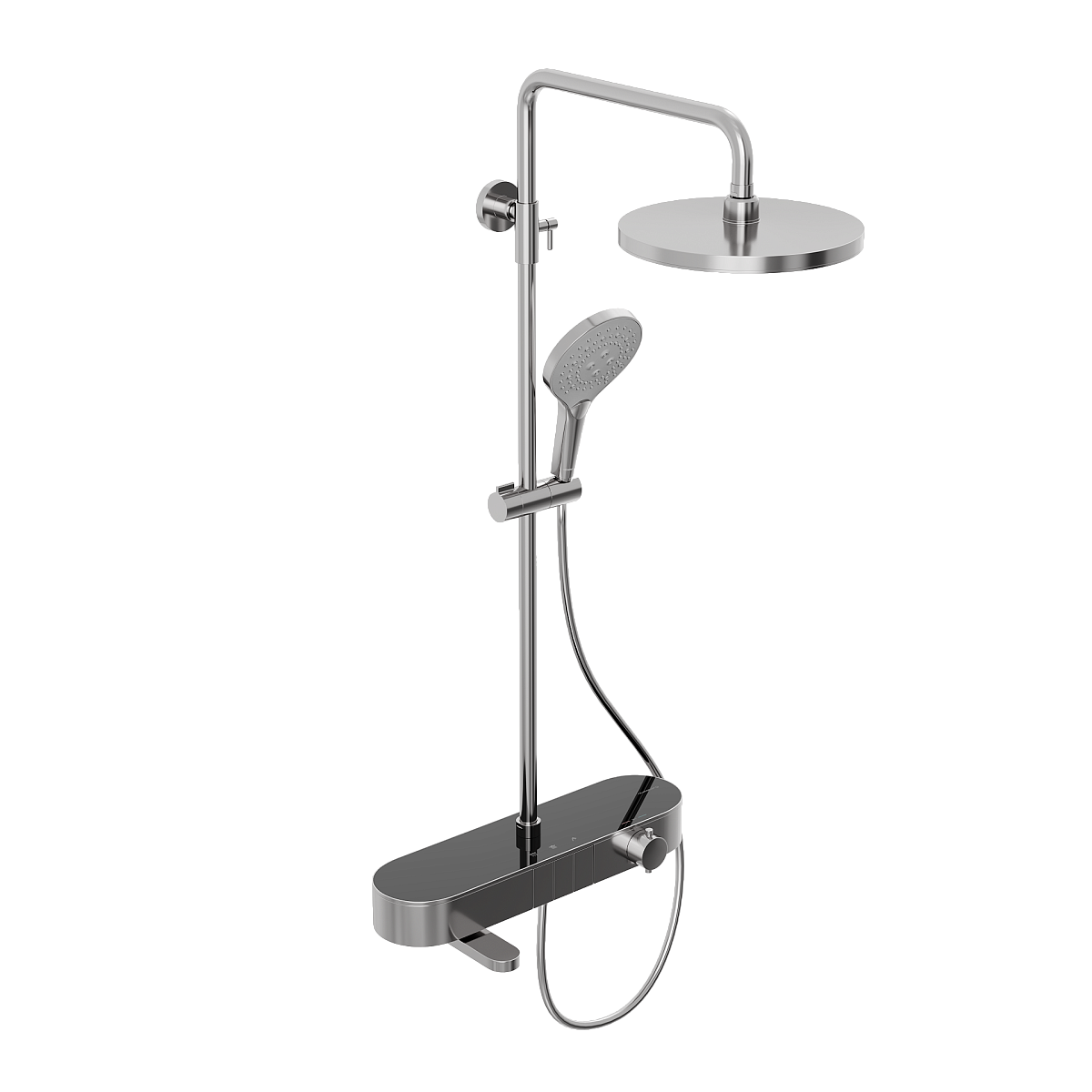 Душевая система Abelsberg Intensa — это выбор для тех, кто не боится выразительности в интерьере. Динамичные линии, продуманные пропорции и мощный визуальный импульс превращают душевую систему в главный акцент ванной комнаты. Интегрированный излив для ванны и круглый тропический душ делают её универсальным решением для повседневного комфорта. Система объединяет стиль и функциональность: каждый элемент продуман до мелочей — от формы переключателя до ощущений от струи воды.