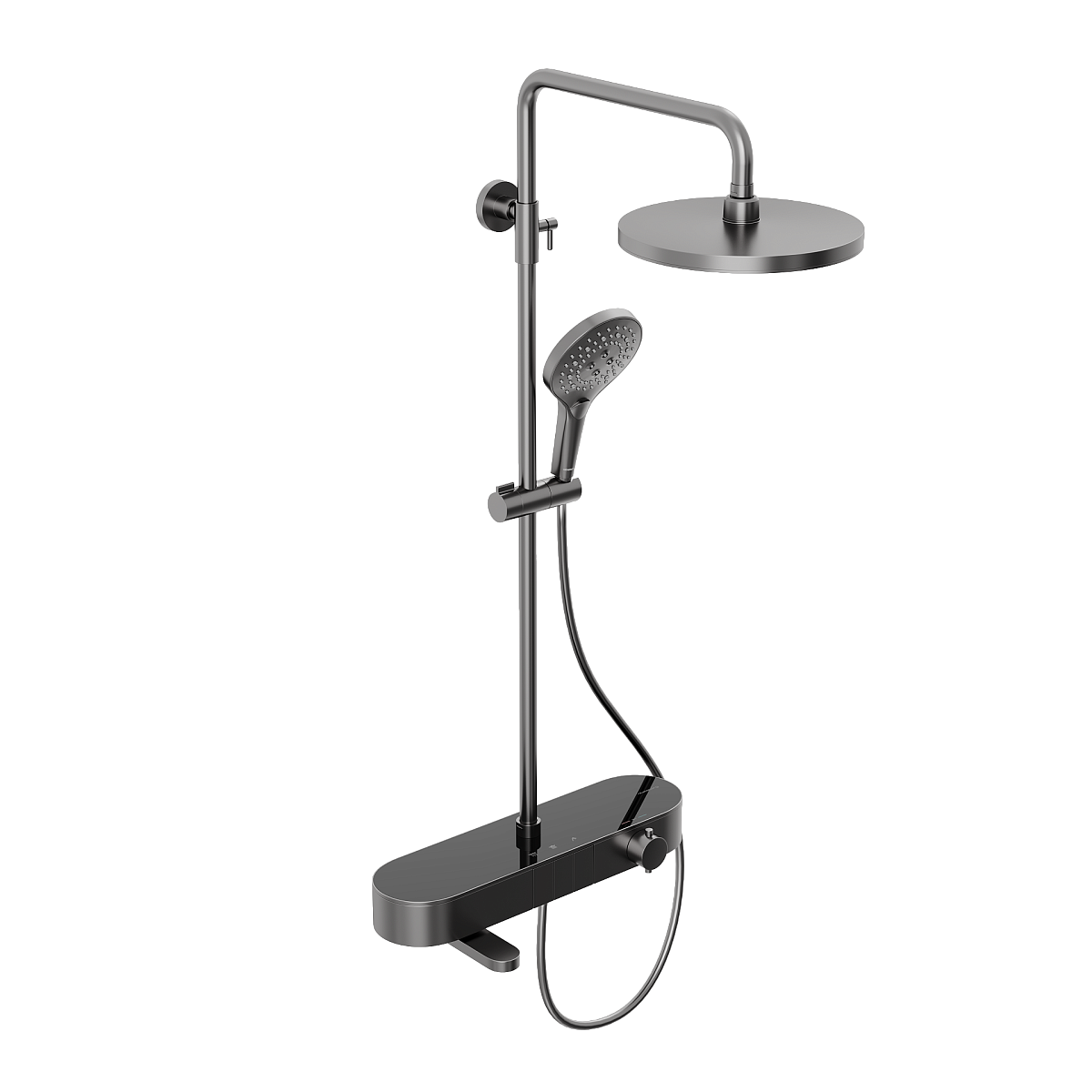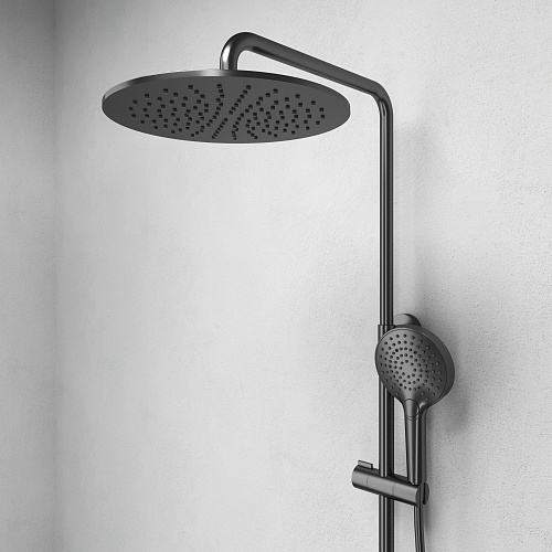 Душевая система Abelsberg Intensa — это выбор для тех, кто не боится выразительности в интерьере. Динамичные линии, продуманные пропорции и мощный визуальный импульс превращают душевую систему в главный акцент ванной комнаты. Интегрированный излив для ванны и круглый тропический душ делают её универсальным решением для повседневного комфорта. Система объединяет стиль и функциональность: каждый элемент продуман до мелочей — от формы переключателя до ощущений от струи воды.