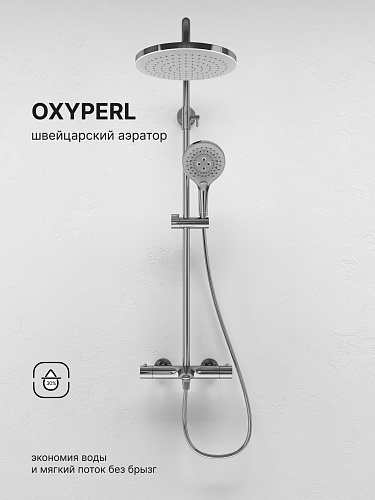 Abelsberg Perfecta — это душевая система, где каждая деталь продумана с особым вниманием к эстетике и комфорту. Изящный силуэт, сбалансированные пропорции и сияющий финиш превращают душевую систему в акцентный элемент интерьера. Сдержанный блеск и тонкие линии подчёркивают утончённый стиль, внося ощущение лёгкости даже в компактное пространство ванной. Система оснащена круглым верхним тропическим душем, создающим эффект мягкого дождя, ручным душем с разными режимами струи и практичным изливом для наполнения ванны. Визуальная лёгкость сочетается с точной инженерией — для тех, кто ценит и эстетику, и удобство.