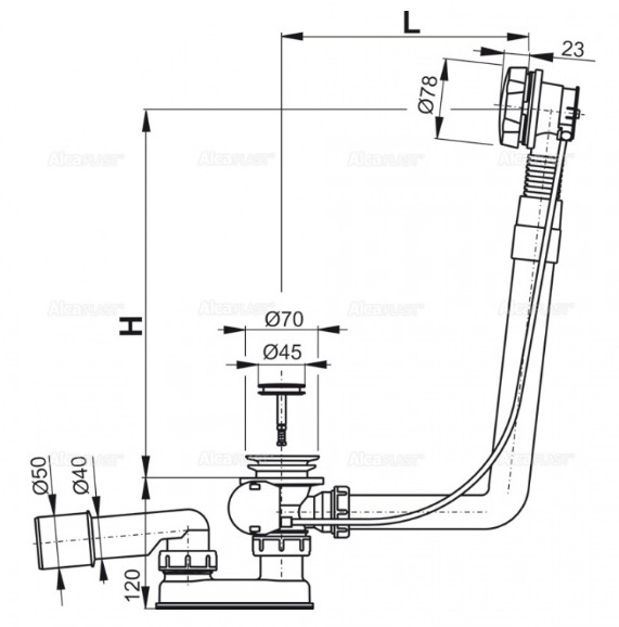 Alca Plast A550K Слив-перелив для ванной автомат