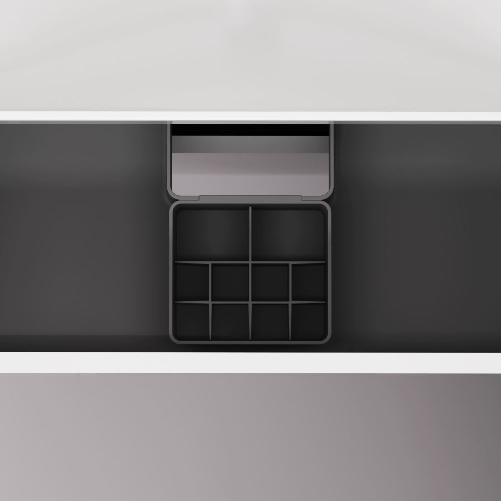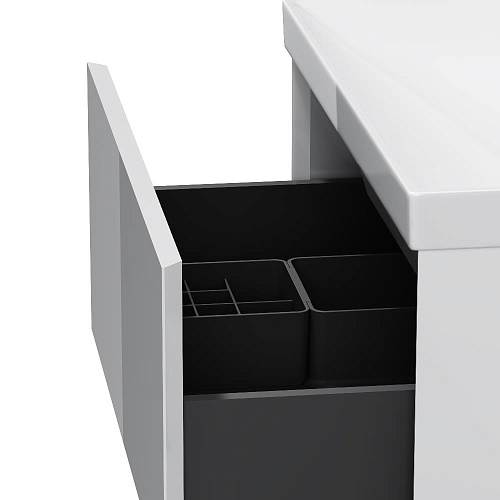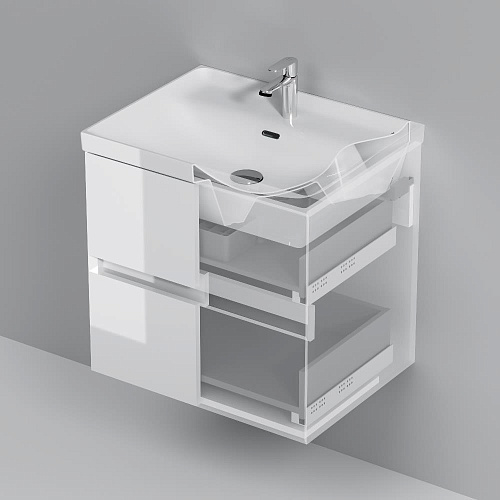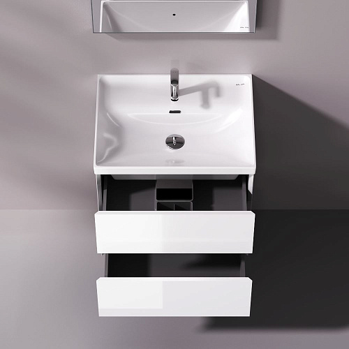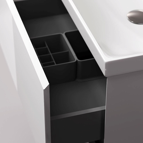 Подвесная база Above от AM.PM — баланс форм в актуальной минималистичной эстетике с утонченным силуэтом. Коллекция Above играет с пространством создавая ощущение лёгкости и простора. Это достигается за счет аккуратного запила фасада и корпуса под углом 45°. Каждая линия работает на эффект невесомости и создаёт ощущение простора даже в компактной ванной комнате. Дизайн разработан студией DanelonMeroni (Великобритания / Италия) и отражает философию коллекции — максимум визуального эффекта без лишних деталей. Выдвижной ящик из ЛДСП толщиной 12 мм имеет антискользящее покрытие. Съёмный органайзер в комплекте позволяет рационально организовать пространство а пластиковый обвод сифона сохраняет полезный объём. Направляющие Pull-out с механизмом Soft Close обеспечивают плавное и бесшумное закрывание превращая ежедневное использование мебели в приятный ритуал. Фасады окрашены глянцевой итальянской эмалью в 7 слоёв обеспечивая насыщенный и глубокий цвет. Такое покрытие устойчиво к ежедневной эксплуатации и надолго сохраняет премиальный внешний вид. ""