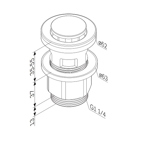 С отверстием для подключения перелива позволяющего выпускать воду из раковины при ее переполнении через отверстие в нижней части перелива. Система клик-клак управляется нажатием на пробку слива. Покрытие устойчиво к коррозии появлению царапин сколов и потускнению. Круглая заглушка в цвете золото. Подключение к сифону: G1 1/4 ""