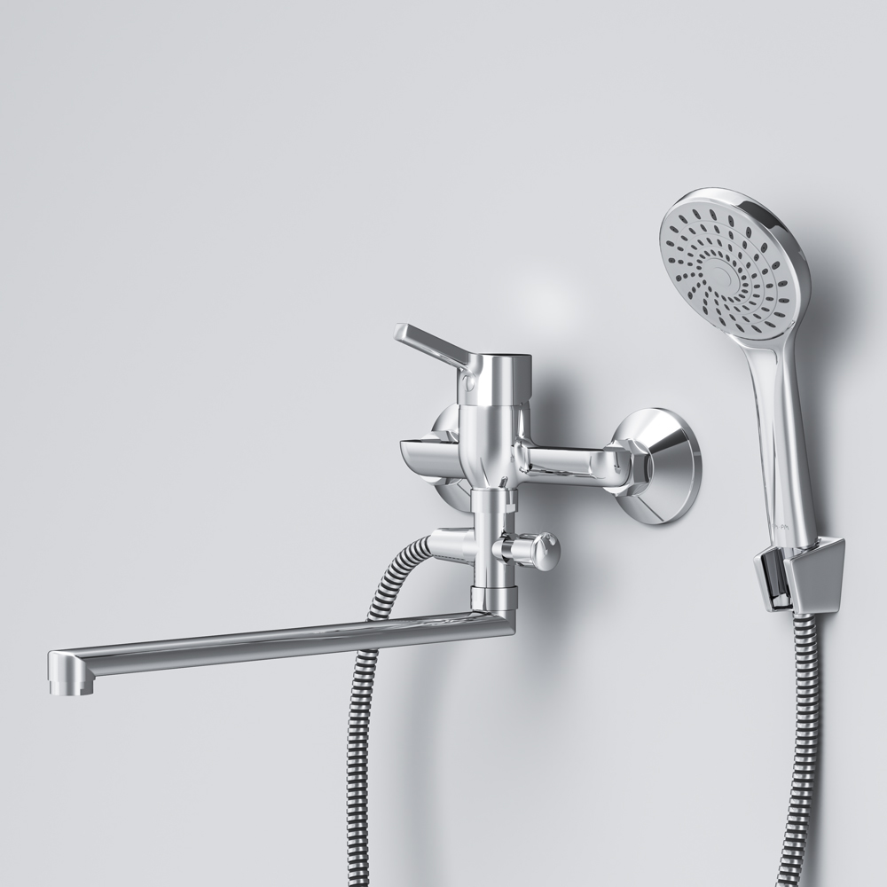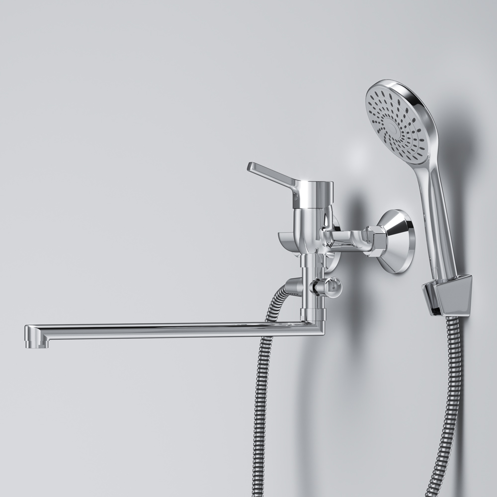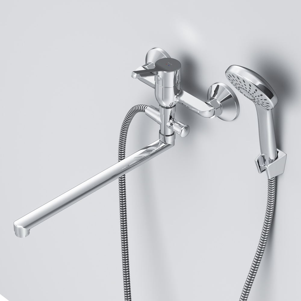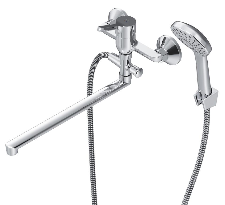 Стильное универсальное решение для ванной комнаты - качественный смеситель для ванны и душа с длинным поворотным изливом с душевым набором. Универсальный длинный излив позволяет использовать смеситель как для ванны так и для рядом стоящей раковины. Функциональный держатель для ручного душа на два положения добавит удобства использования. Душевой шланг длиной 150 см позволит наслаждаться душем даже высокому человеку. Максимум функций за разумную плату в одном изделии! Ультрамодный дизайн ручки придает смесителю дополнительную динамику и дарит непревзойденную легкость управления. Вы почувствуете это с первого прикосновения. Точная инженерия для Вашего комфорта: благодаря обширной зоне движения ручки управлять температурой воды стало еще проще.