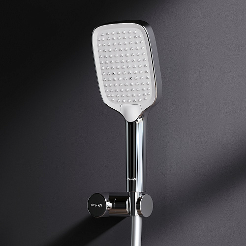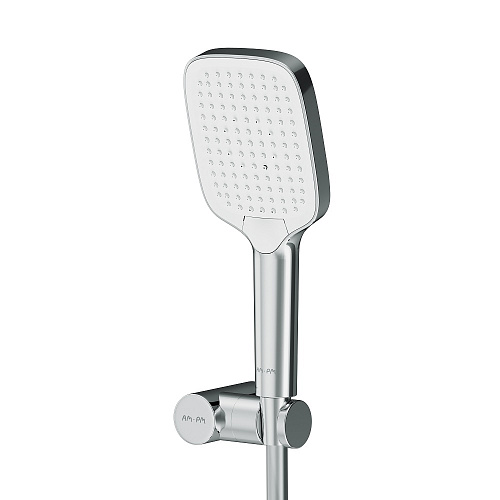 Встречайте коллекцию Func – самую функциональную коллекцию в линейке AM.PM. Наши инженеры продумали и учли каждую деталь чтобы сделать взаимодействие с продуктами максимально простым и комфортным для всех членов семьи. Премиальный размер лейки позволит вам почувствовать все преимущества использования дизайнерского продукта. А три режима ручного душа Spray EnerJet Spray + Massage подарят полный спектр ощущений при принятии душа: помогут взбодриться утром и расслабиться после рабочего дня. Переключайте режимы нажатием всего одной кнопки. Невероятно легкая очистка душевых форсунок благодаря функции Rub& Clean. Набор дополнен регулируемым держателем для ручного душа. Шарнирное соединение защищает душевой шланг от перекручивания. ""