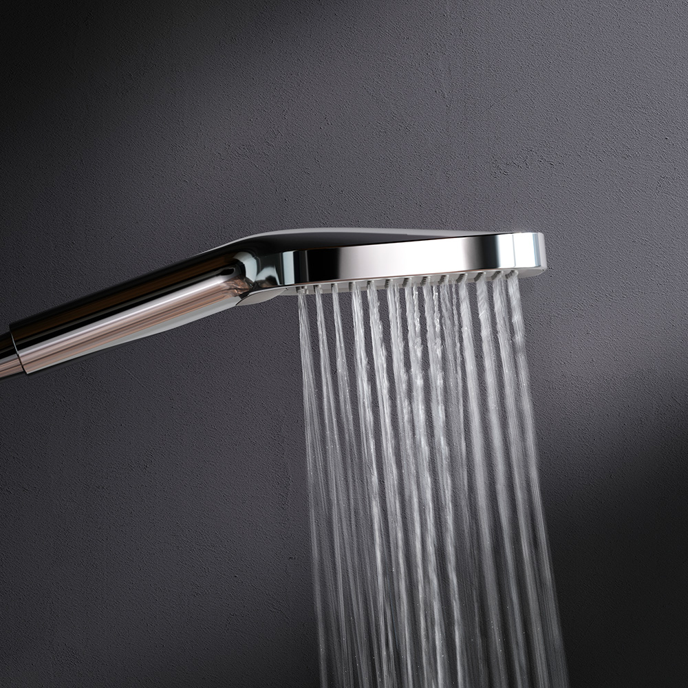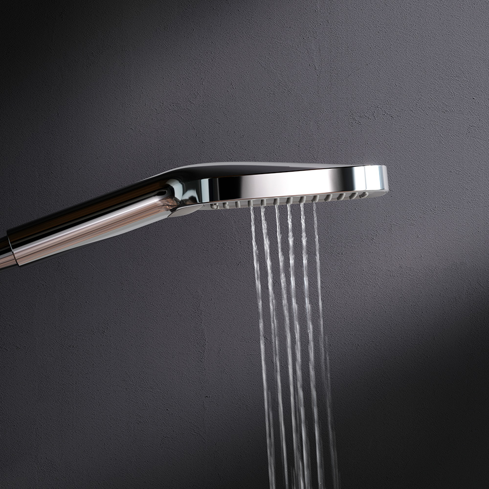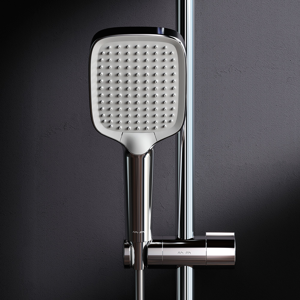 Встречайте коллекцию Func – самую функциональную коллекцию в линейке AM.PM. Наши инженеры продумали и учли каждую деталь чтобы сделать взаимодействие с продуктами максимально простым и комфортным для всех членов семьи. Премиальный размер лейки позволит вам почувствовать все преимущества использования дизайнерского продукта. А три режима ручного душа Spray EnerJet Spray + Massage подарят полный спектр ощущений при принятии душа: помогут взбодриться утром и расслабиться после рабочего дня. Переключайте режимы нажатием всего одной кнопки. Невероятно легкая очистка душевых форсунок благодаря функции Rub& Clean. ""