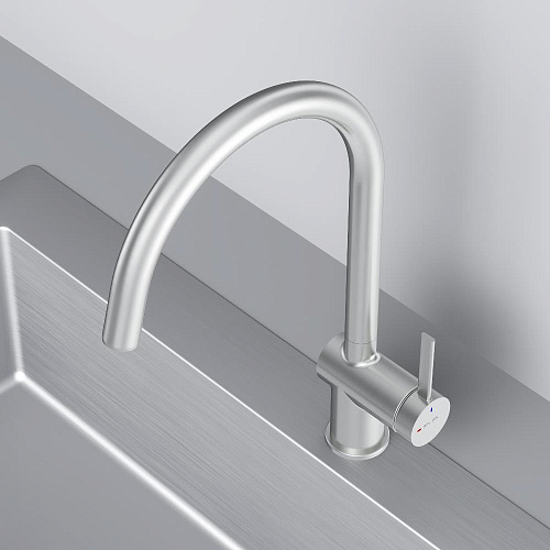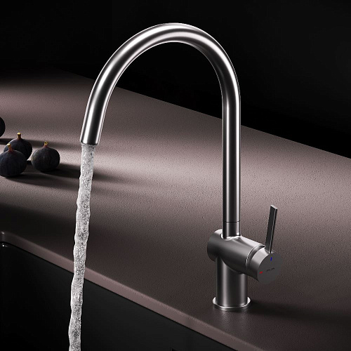 Встречайте долгожданное пополнение нашумевшей коллекции Func — кухонные смесители с оригинальными «фишками» характерными для всей коллекции. Дизайн характерный только для премиум-сегмента благодаря собственным дизайнерам бренда теперь представлен и в более доступной ценовой категории. Функция EcoStart — стильное и экологичное решение для вашего дома. При включении смесителя в центральном положении автоматически потечёт холодная вода. Для подачи горячей воды ручку нужно повернуть влево поворот вправо заблокирован. Оптимизация диапазона движения ручки смесителя позволяет сократить нерациональный расход воды до 40% в месяц. Дополнительным преимуществом функции EcoStart является возможность установить смеситель вплотную к стене что особенно важно в условии небольших кухонных пространств. Уникальная ручка в форме тонкого стика позволяет с легкостью управлять смесителем превращая повседневные задачи в настоящее удовольствие. Эксклюзивное покрытие Everlast вдвое превышает отраслевые стандарты по прочности и износостойкости. Ювелирный блеск и долговечность покрытия достигаются по стандарту Chrome Plating Standard NSS 80H. ""