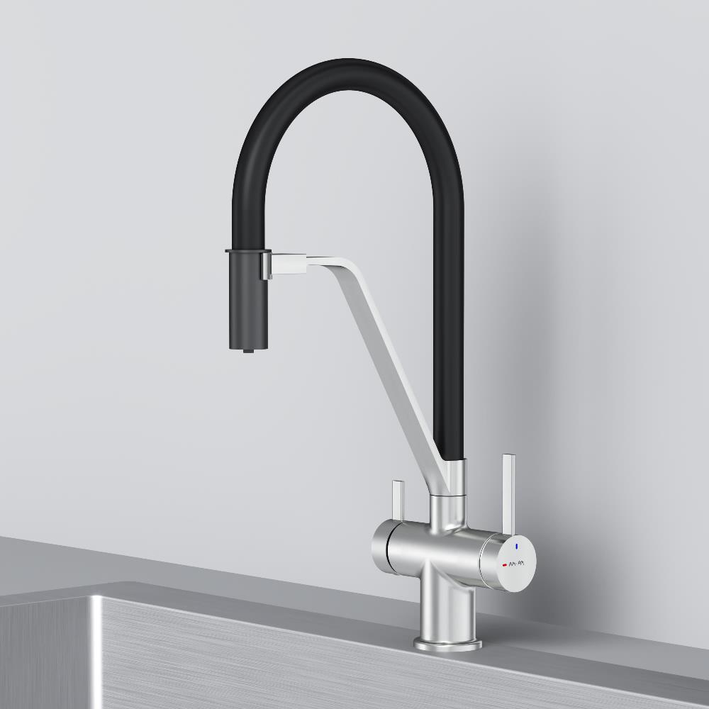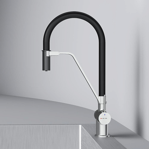 Встречайте долгожданное пополнение нашумевшей коллекции Func — кухонные смесители с оригинальными «фишками» характерными для всей коллекции. Дизайн характерный только для премиум-сегмента благодаря собственным дизайнерам бренда теперь представлен и в более доступной ценовой категории. Смеситель оснащён встроенным каналом для подачи питьевой воды. Чтобы получить питьевую воду воспользуйтесь ручкой расположенной с левой стороны корпуса для обычной воды управляйте смесителем привычным образом. Гибкий излив смесителя позволяет справляться с любыми задачами и превращает его в по-настоящему профессиональный инструмент на вашей кухне. Функция EcoStart — стильное и экологичное решение для вашего дома. При включении смесителя в центральном положении автоматически потечёт холодная вода. Для подачи горячей воды ручку нужно повернуть влево поворот вправо заблокирован. Оптимизация диапазона движения ручки смесителя позволяет сократить нерациональный расход воды до 40% в месяц. Дополнительным преимуществом функции EcoStart является возможность установить смеситель вплотную к стене что особенно важно в условии небольших кухонных пространств. Уникальная ручка в форме тонкого стика позволяет с легкостью управлять смесителем превращая повседневные задачи в настоящее удовольствие. Эксклюзивное покрытие Everlast вдвое превышает отраслевые стандарты по прочности и износостойкости. Ювелирный блеск и долговечность покрытия достигаются по стандарту Chrome Plating Standard NSS 80H. ""