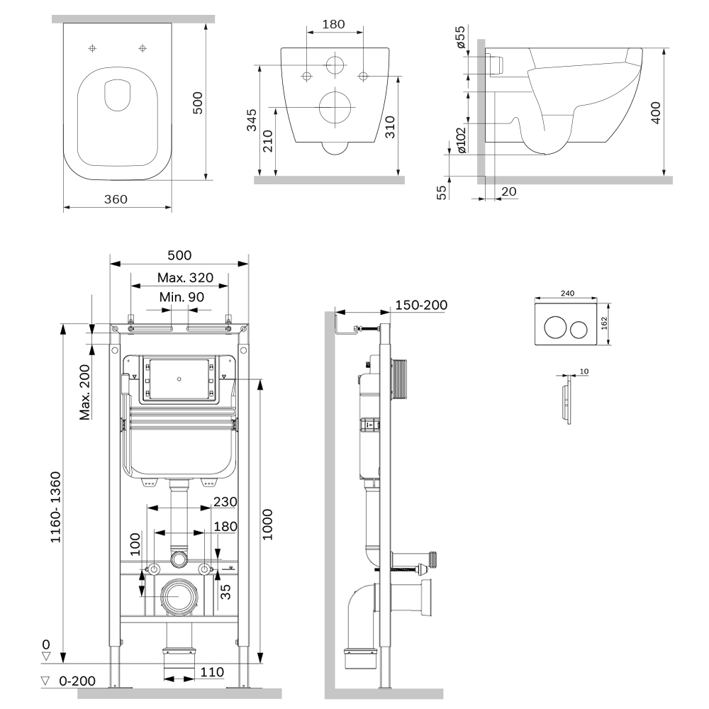 Комплект: Унитаз, Инсталляция, Кнопка смыва