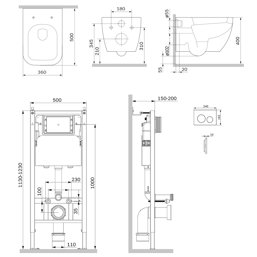 Комплект: Унитаз, Инсталляция, Кнопка смыва