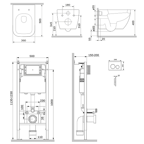 Тип товара Комплект: Унитаз, Инсталляция, Кнопка смыва