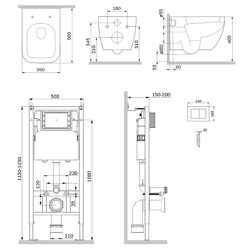 Комплект: Унитаз, Инсталляция, Кнопка смыва