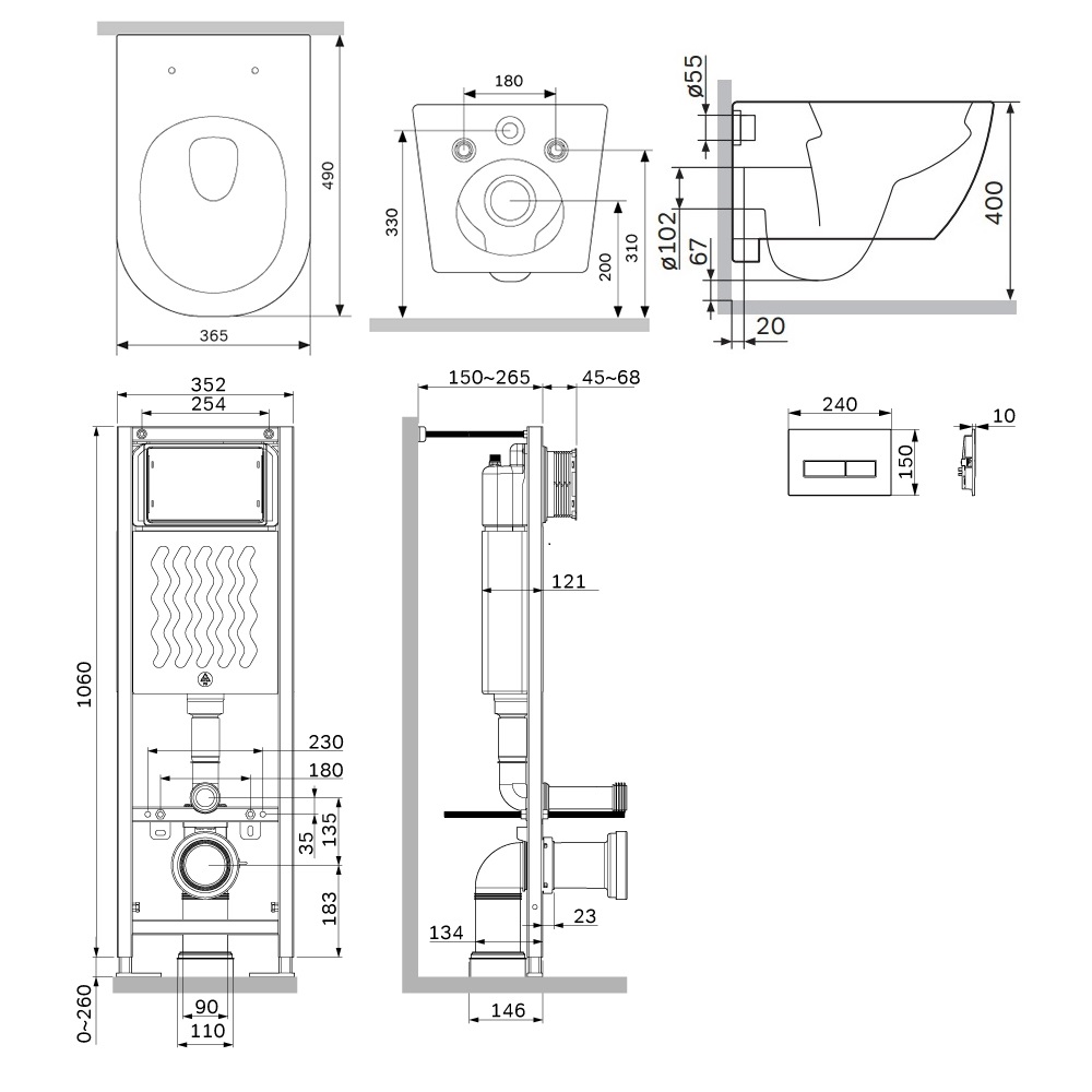 Тип товара Комплект: Унитаз, Инсталляция, Кнопка смыва
