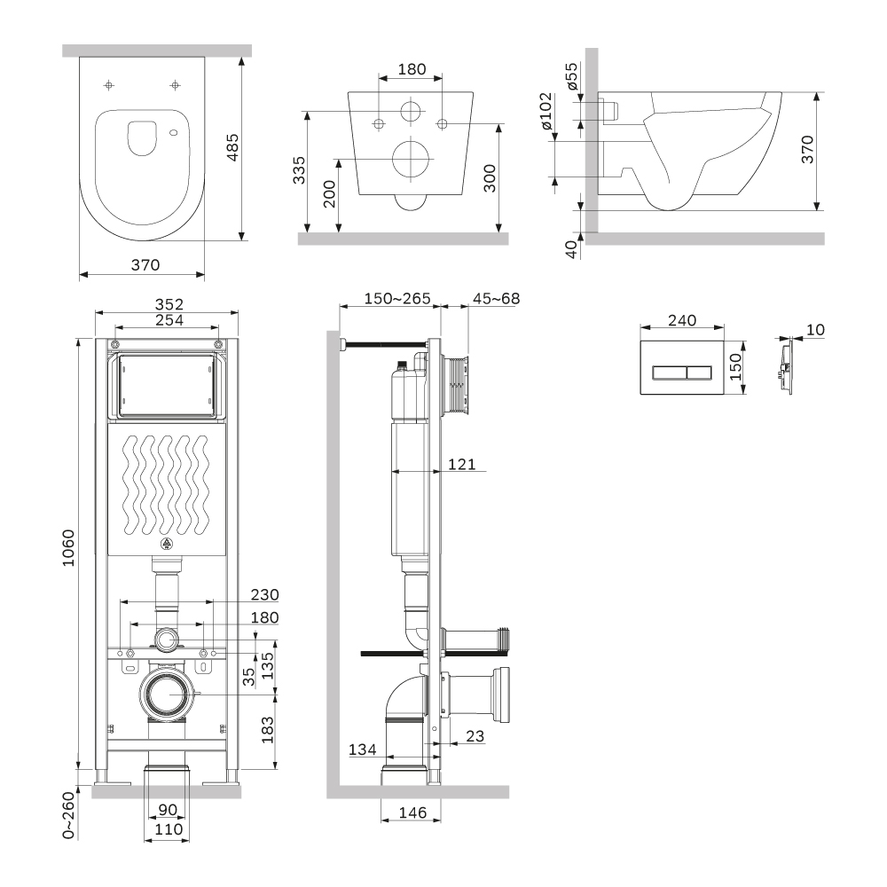 Комплект: Унитаз, Инсталляция, Кнопка смыва