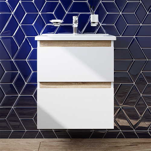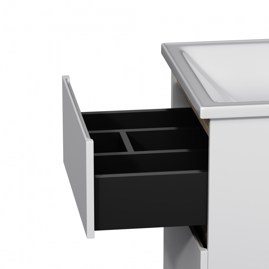 Впервые на рынке – дизайнерская коллекция сантехники которую может позволит себе каждый. Самое эстетичное сочетание цветов и фактур от дизайн-бюро Danelon Meroni (Великобритания & Италия): белые глянцевые фасады дополнены отделкой под светлое дерево. Функциональный органайзер в первом ящике позволит хранить необходимые косметические средства под рукой и в полном порядке. Внутреннее покрытие каждого ящика выполнено в современном цвете Anthracite и имеет противоскользящее покрытие.? Встроенная керамическая раковина белоснежного цвета оснащена специальным бортиком для защиты от пролива воды за мебель.