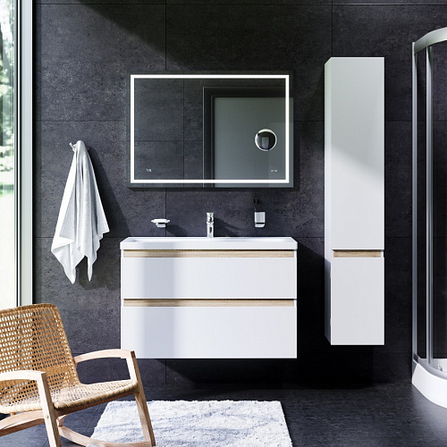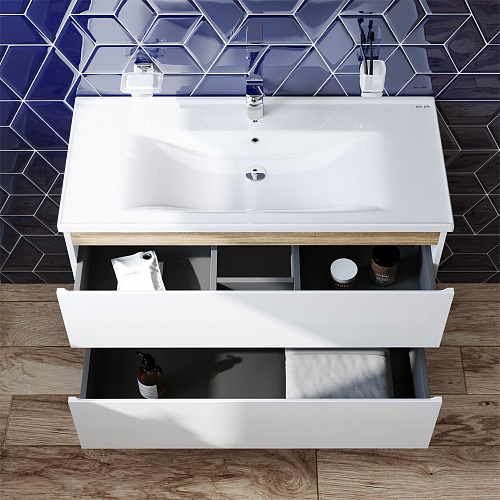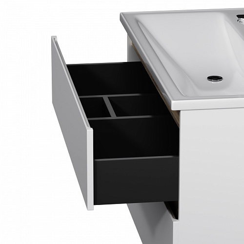 Впервые на рынке – дизайнерская коллекция сантехники которую может позволит себе каждый. Самое эстетичное сочетание цветов и фактур от дизайн-бюро Danelon Meroni (Великобритания & Италия): белые глянцевые фасады дополнены отделкой под светлое дерево. Функциональный органайзер в первом ящике позволит хранить необходимые косметические средства под рукой и в полном порядке. Внутреннее покрытие каждого ящика выполнено в современном цвете Anthracite и имеет противоскользящее покрытие.? Встроенная керамическая раковина белоснежного цвета оснащена специальным бортиком для защиты от пролива воды за мебель.