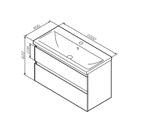 AM.PM M85AFHX1002WG X-Joy, База под раковину подвесная, 100х45 см, 2 ящика, белый глянец