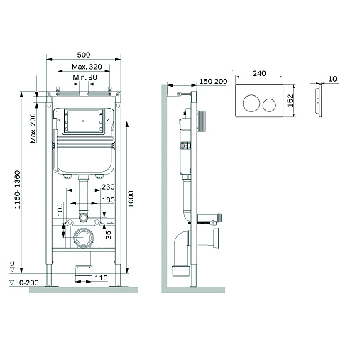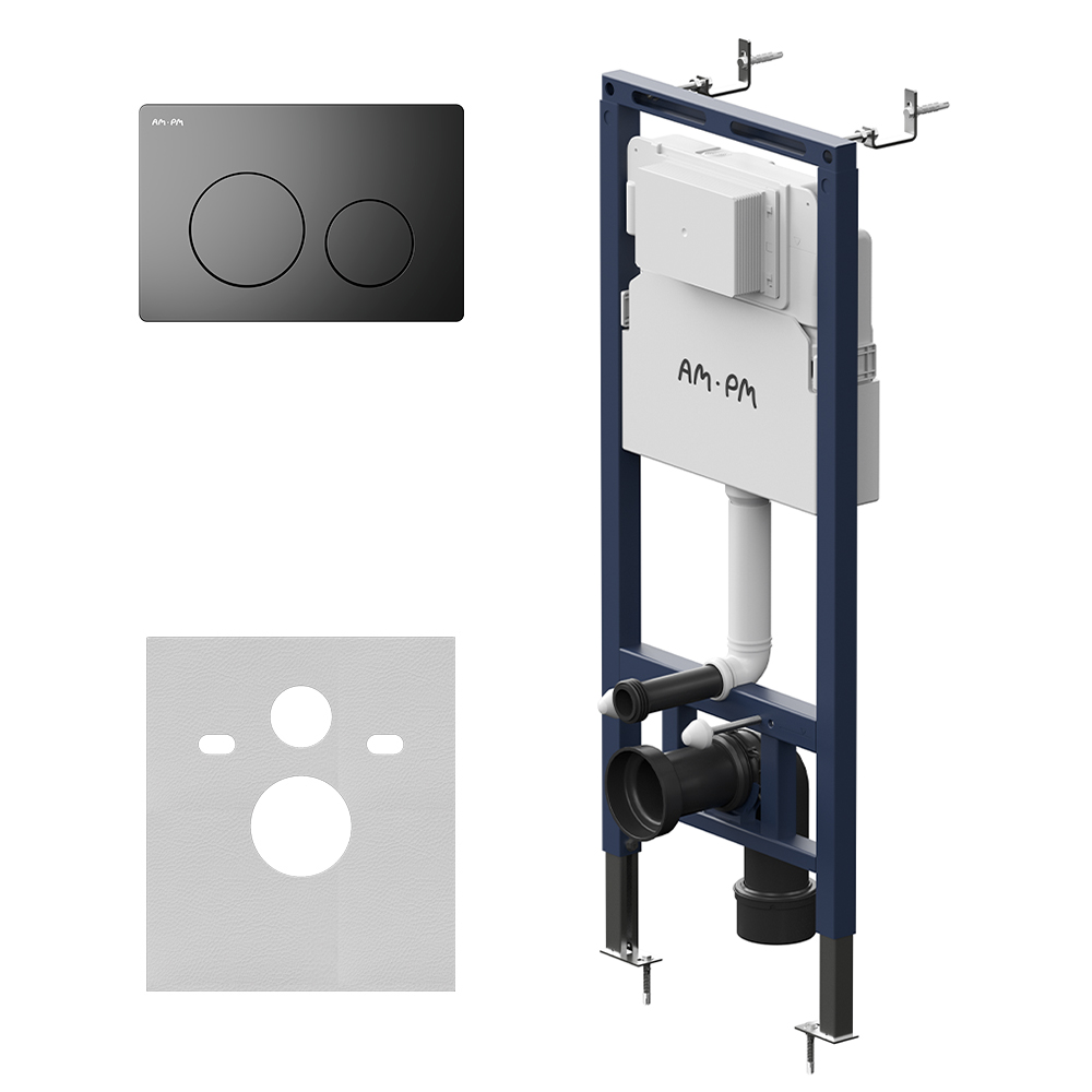 Максимально полный комплект поставки включающий все необходимые крепления патрубки звукоизолирующую прокладку. Экономия пространства благодаря узкому бачку – 120 мм глубиной. Заливной клапан с низким уровнем шума - Класс II согласно европейского стандарта EN 14124. Наша инсталляция заботится о гигиене самостоятельно. Просто положите таблетку в специальный отсек — и деликатная свежесть на весь срок её действия гарантирована. Функция SetUp : Гибкая система крепежа – универсальность и эффективность установочного процесса. Гибко обходит вертикальные и горизонтальные трубы. Высокая прочность и износостойкость. Рама выдерживает нагрузку до 500 кг. Внутреннее сечение профиля 3 мм обеспечивает надежность и долговечность конструкции. Подходит для унитазов любых размеров. Армированный шланг подачи воды двойная прокладка слива и подачи воды. Подключение воды сзади сверху. В комплекте механическая двухрежимная клавиша из ABS пластика в цвете матовый черный. ""