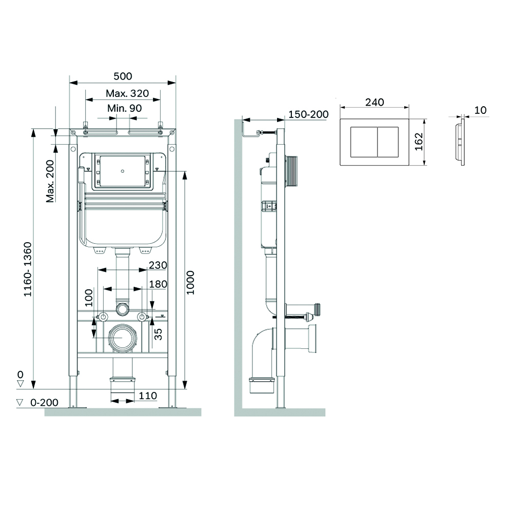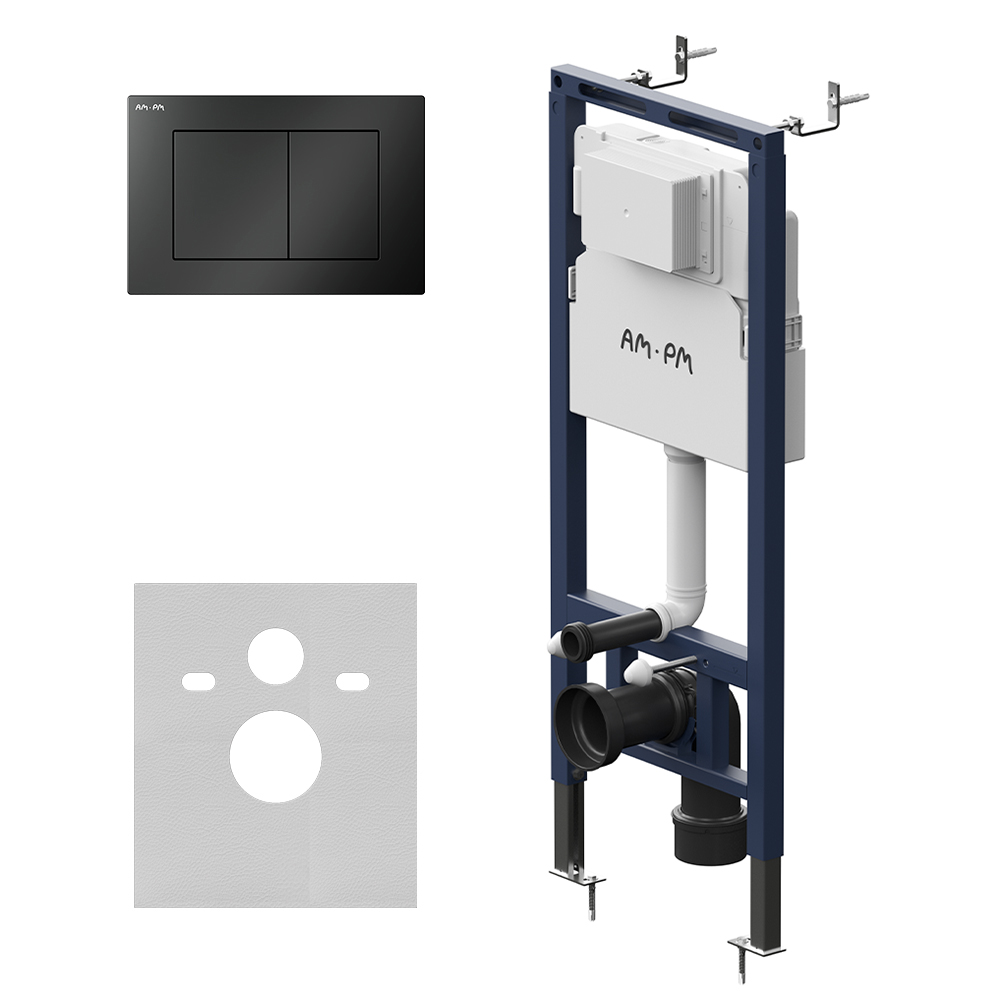 Максимально полный комплект поставки включающий все необходимые крепления патрубки звукоизолирующую прокладку. Экономия пространства благодаря узкому бачку – 120 мм глубиной. Заливной клапан с низким уровнем шума - Класс II согласно европейского стандарта EN 14124. Наша инсталляция заботится о гигиене самостоятельно. Просто положите таблетку в специальный отсек — и деликатная свежесть на весь срок её действия гарантирована. Функция SetUp : Гибкая система крепежа – универсальность и эффективность установочного процесса. Гибко обходит вертикальные и горизонтальные трубы. Высокая прочность и износостойкость. Рама выдерживает нагрузку до 500 кг. Внутреннее сечение профиля 3 мм обеспечивает надежность и долговечность конструкции. Подходит для унитазов любых размеров. Армированный шланг подачи воды двойная прокладка слива и подачи воды. Подключение воды сзади сверху. В комплекте механическая двухрежимная клавиша из ABS пластика в цвете матовый черный. ""
