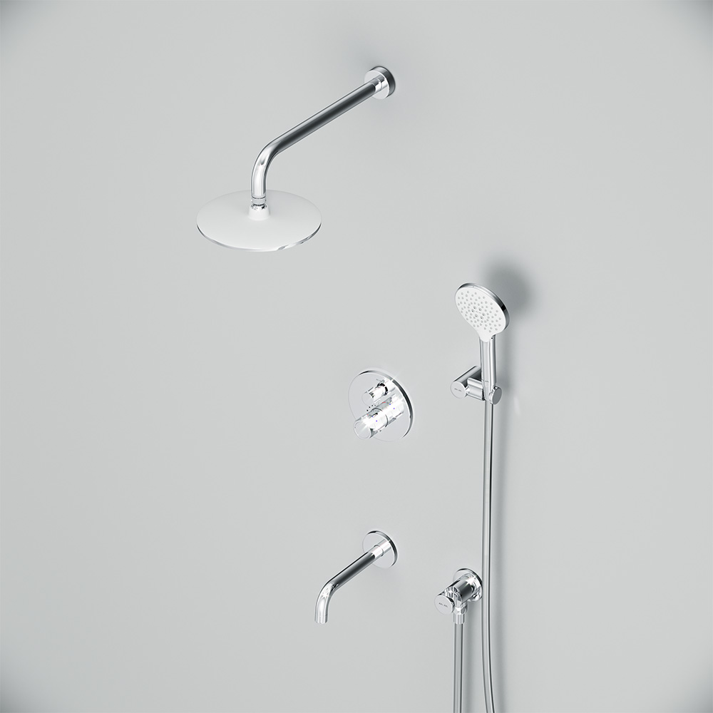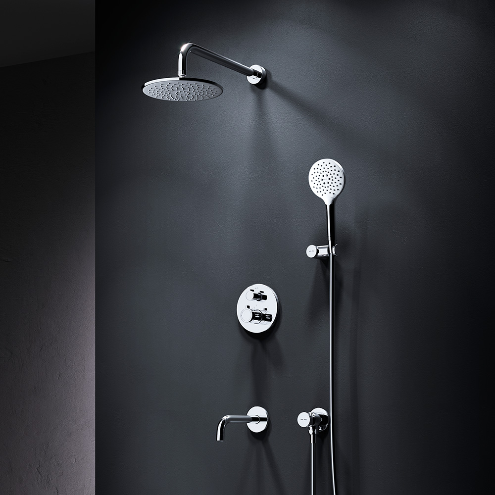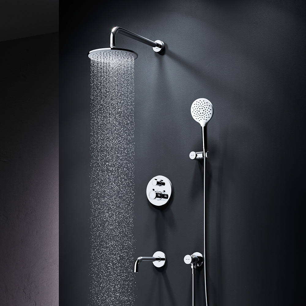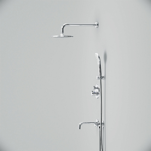 Коллекция X-Joy включает в себя по-настоящему дизайнерские продукты в своем ценовом сегменте. Разработанные дизайн-агентством GP designpartners из Австрии они завоевали любовь многих покупателей. Набор встроенного оборудования X-Joy - идеальное решение для вашей ванной комнаты. Встроенный механизм освобождает ванную комнату от лишних деталей превращая пространство в идеальное место для себя. Набор включает в себя: верхний тропический душ 22 см ручной душ держатель ручного душа и смеситель. Высокопроизводительный Коаксиальный картридж с термостатом включающий высокочувствительный термоэлемент обладает быстрой реакцией на изменения температуры или давления в водопроводной сети защищает от ожога даже при внезапном отключении холодной воды. Удобные ручки управления потоком и температурой воды расположены на одном уровне что позволяет менять режимы легко и просто. Смеситель имеет удобный переключатель сразу на 3 выхода что является эффективным инженерным решением в сантехнической отрасли. Покрытие Everlast – вдвое превышает отраслевые стандарты по прочности и износостойкости. Ювелирный блеск и прочность покрытия достигаются по стандарту Chrome plating standard NSS 80H. Отдельная гарантия на корпус и покрытие – 10 лет в два раза больше чем принято по европейским стандартам. ""