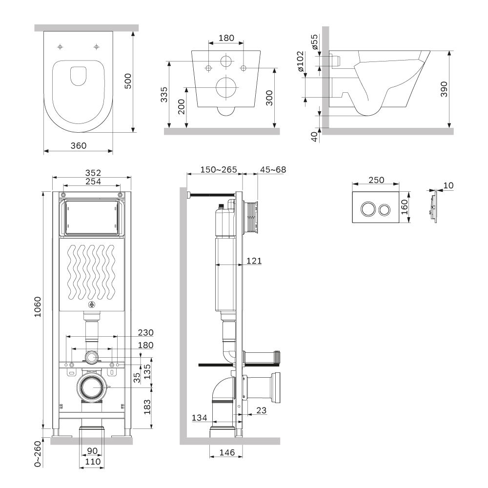 Комплект: Унитаз, Инсталляция, Кнопка смыва