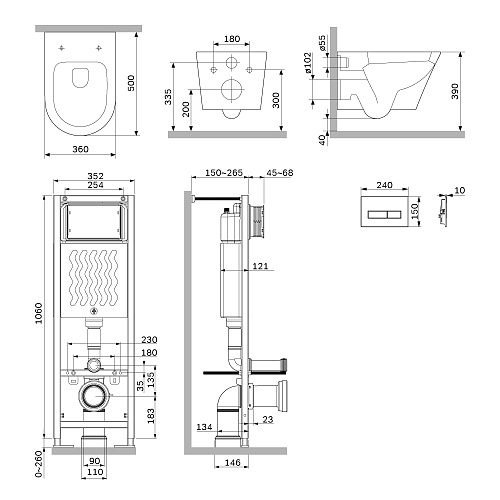 Тип товара Комплект: Унитаз, Инсталляция, Кнопка смыва