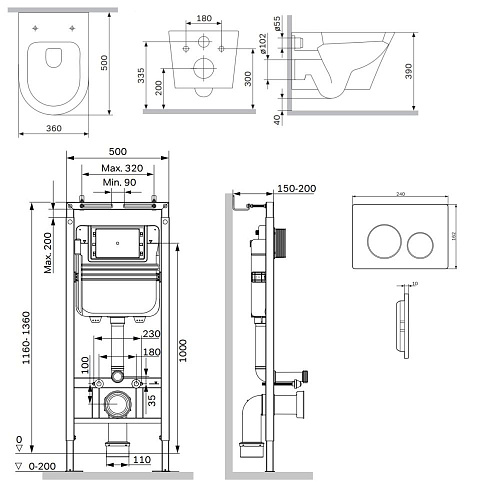 Комплект: Унитаз, Инсталляция, Кнопка смыва