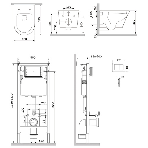 Комплект: Унитаз, Инсталляция, Кнопка смыва
