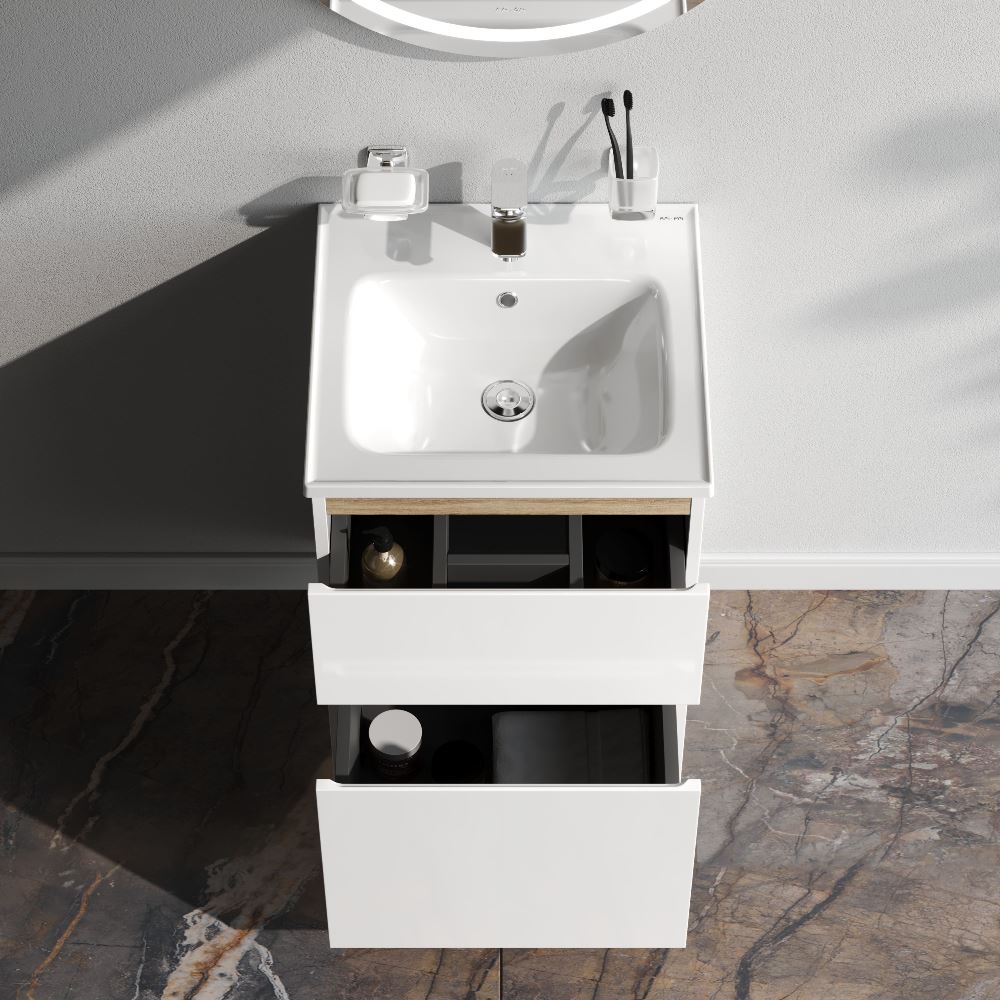Напольная тумба бренда AM.PM коллекции X-Joy отличается эстетичным сочетанием цветов и фактур от дизайн-агентства Danelon Meroni: белые глянцевые фасады дополнены отделкой под светлое дерево. Функциональный органайзер в первом ящике позволит хранить необходимые косметические средства под рукой и в полном порядке. Внутреннее покрытие каждого ящика выполнено в современном цвете антрацит" и имеет противоскользящее покрытие.? Материал изделия - МДФ ЛДСП.
