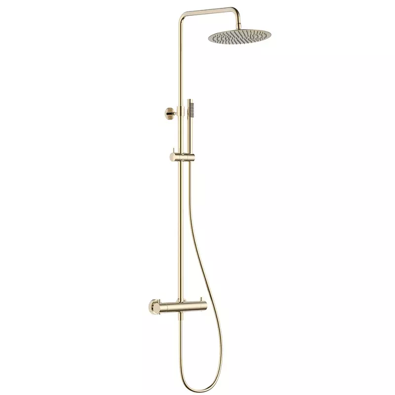 Aquame AQM8006BG Душевая система с термостатом, D250, 1 режим, латунная лейка, верхний душ - сталь, Brushed gold (шлифованное золото)