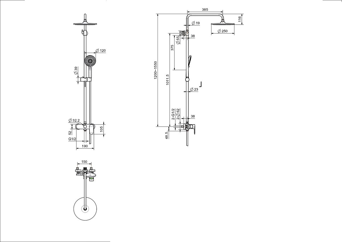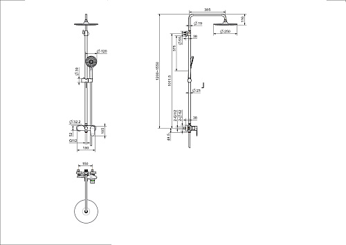 Оснащение 1. Тропический душ 2. Душевая лейка 3. Рейлинг 4. Душевой шланг из нержавеющей стали 5. Смеситель 6. S-образные эксцентрики 7. Декоративные отражатели 8. Монтажный комплект