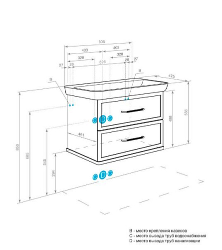 Aquaton Нео-Классика 1A286301NCTG0 Тумба под раковину подвесная