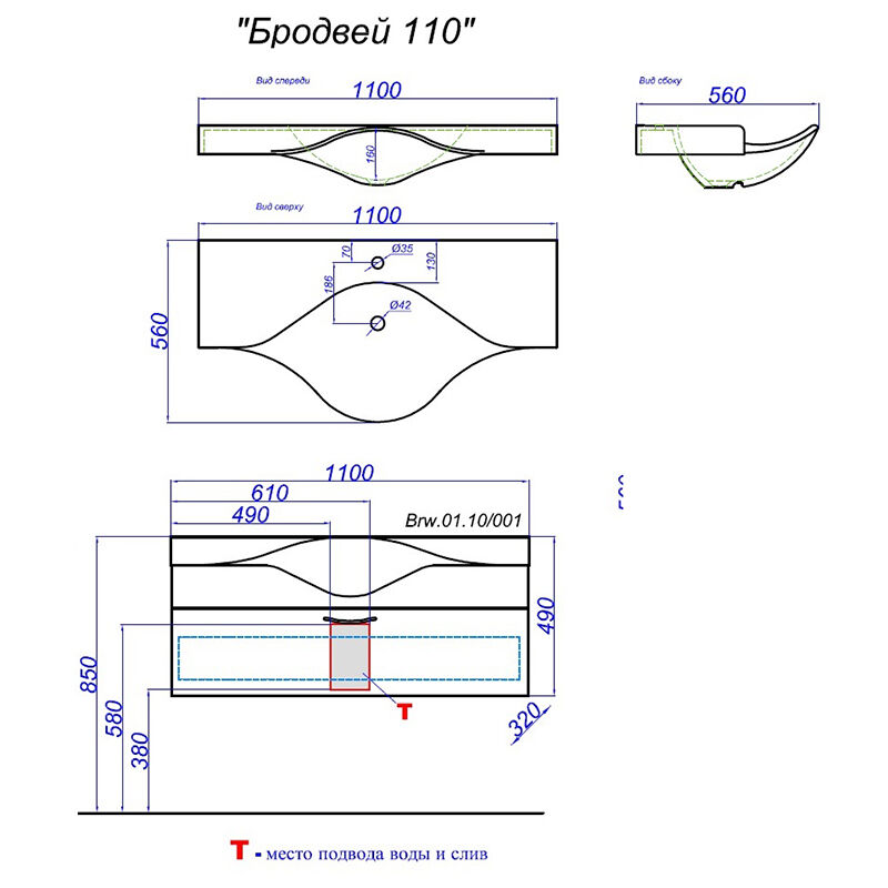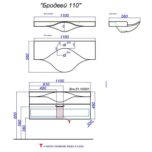 Артикул: Тумба Бродвей 110 Brw.01.10/001/W с раковиной