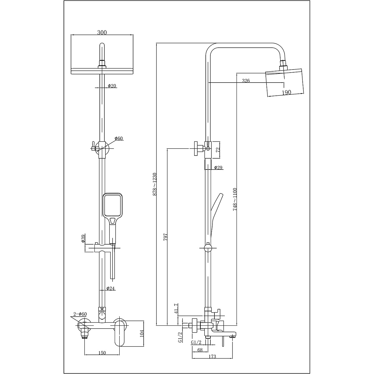 Azario AZ-20R Arizona Душевая колонна со смесителем для ванны, с поворотным изливом, круглая, хром