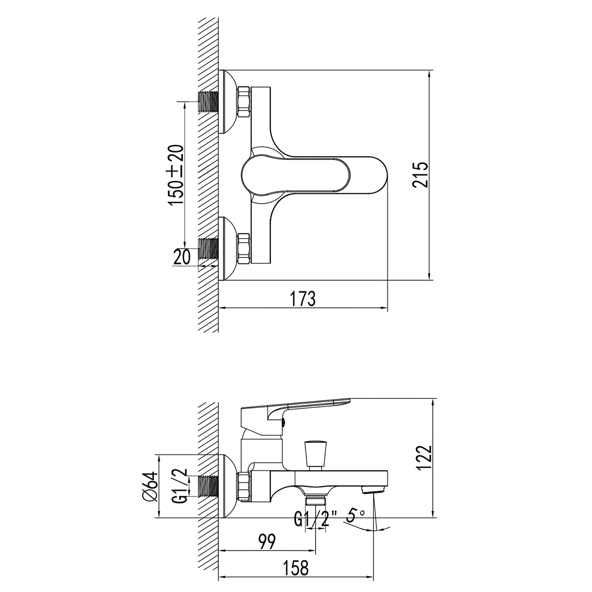 Azario AZ-WWK238155PA Elvis Смеситель для ванны, черный
