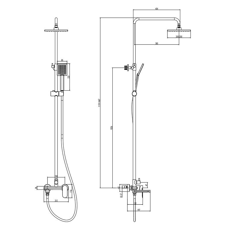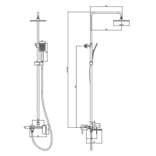 Душевая система Florida Square с квадратным тропическим душем и квадратной лейкой. Поворотный излив