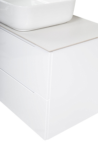 Столешница из керамогранита толщиной 10 мм без отверстия под смеситель. Доступные цвета столешницы: Bianco Opaco (белый матовый), Cemento Struttura (текстура цементного покрытия).