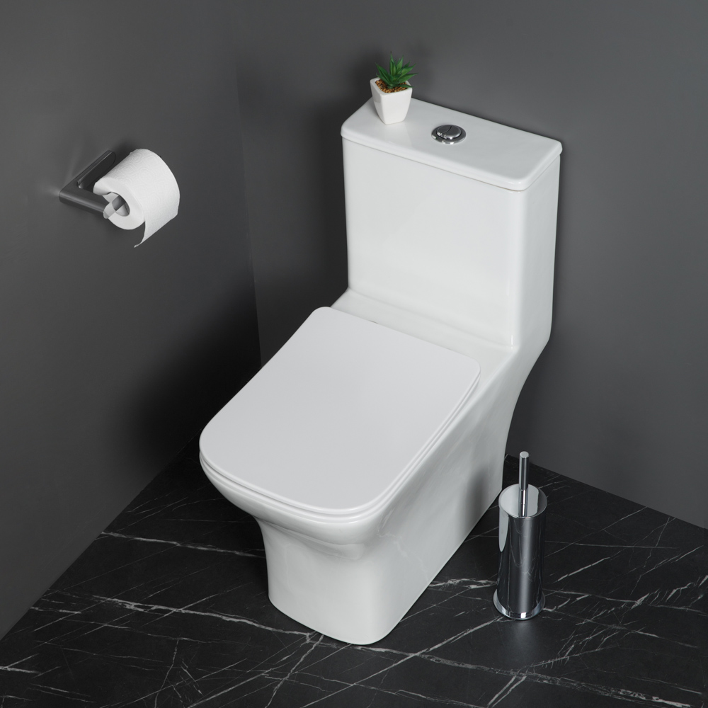 Унитаз-моноблок представляет собой единую конструкцию, в которой бачок для смыва и чаша соединены в одно целое. Это идеальное сочетание функциональности и эстетики, что делает их отличным выбором для любой ванной комнаты. Унитазы моноблоки имеют элегантный и цельный вид, который гармонично вписывается в любой интерьер — от современного и минималистичного до классического и роскошного. Их гладкие линии и отсутствие видимых швов облегчают уход за унитазом, обеспечивая более гигиеничные условия. Благодаря минимальному количеству стыков, моноблоки менее подвержены утечкам и повреждениям. Качественная двухрежимная арматура, гарантирует долговечность и надежность, с нижним подводом воды обеспечивающим плавное и тихое заполнение бачка. Безободковая конструкция чаши обеспечивает отличную гигиену и простоту ухода. Мощный смыв с минимальным уровнем шума, что делает их комфортными в использовании. •Продукция произведена по международным стандартам EN •Эффективный спиралевидный смыв