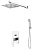 Оснащение Встраиваемый смеситель с переключателем на два выхода, верхний душ диаметр 25 см с изливом, ручной душ со шлангом, штуцером и держателем