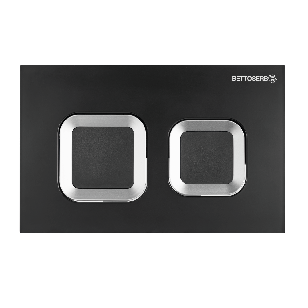 Клавиша смыва BETTOSERB SMART Черный матовый + Хром глянец Создайте стильный контраст в вашем санузле с двухцветной клавишей смываBETTOSERB SMART.четание благородного матового черного и роскошного глянцевого хрома придает особую изысканность и современность любому интерьеру.ючевые преимущества:Эксклюзивное двухцветное покрытие— матовый черный для тактильного комфорта и глянцевый хром для эффектного блескаПремиальная сборка SMART— усовершенствованный механизм с плавным ходом и точным срабатываниемКонтрастный дизайн— стильное сочетание цветов для современных интерьерных решенийАнтивандальное исполнение— устойчивость к механическим повреждениям и влагеУниверсальный монтаж— совместимость с большинством инсталляционных систем Технические особенности: Металлическая основа с двойным защитным покрытием Гарантированный ресурс работы — 100 000 циклов Устойчивость к коррозии и бытовой химии Простота очистки и ухода BETTOSERB SMART— это: Уникальный дизайн для ценителей стиля Сочетание эстетики и функциональности Долговечность и безупречное качество Добавьте нотку роскоши в ваш санузел! Доступна для заказа с бесплатной доставкой по РФ.