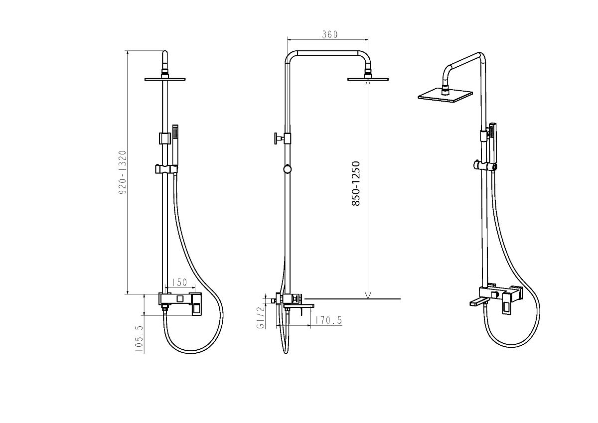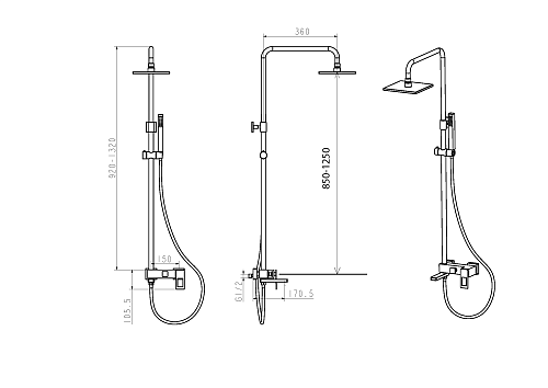 Оснащение Душевая стойка, смеситель, душевой шланг, душевая лейка, держатель душевой лейки.
