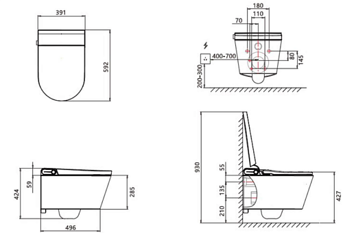 • Комплектация: основное устройство, пульт дистанционного управления, две батарейки ААА, инсталляция со скрытым бачком для установки унитаза, инструкция по эксплуатации.