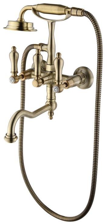 Бронзовый настенный смеситель для ванной ADRIA-Classic с подставкой для лейки, лейкой и шлангом