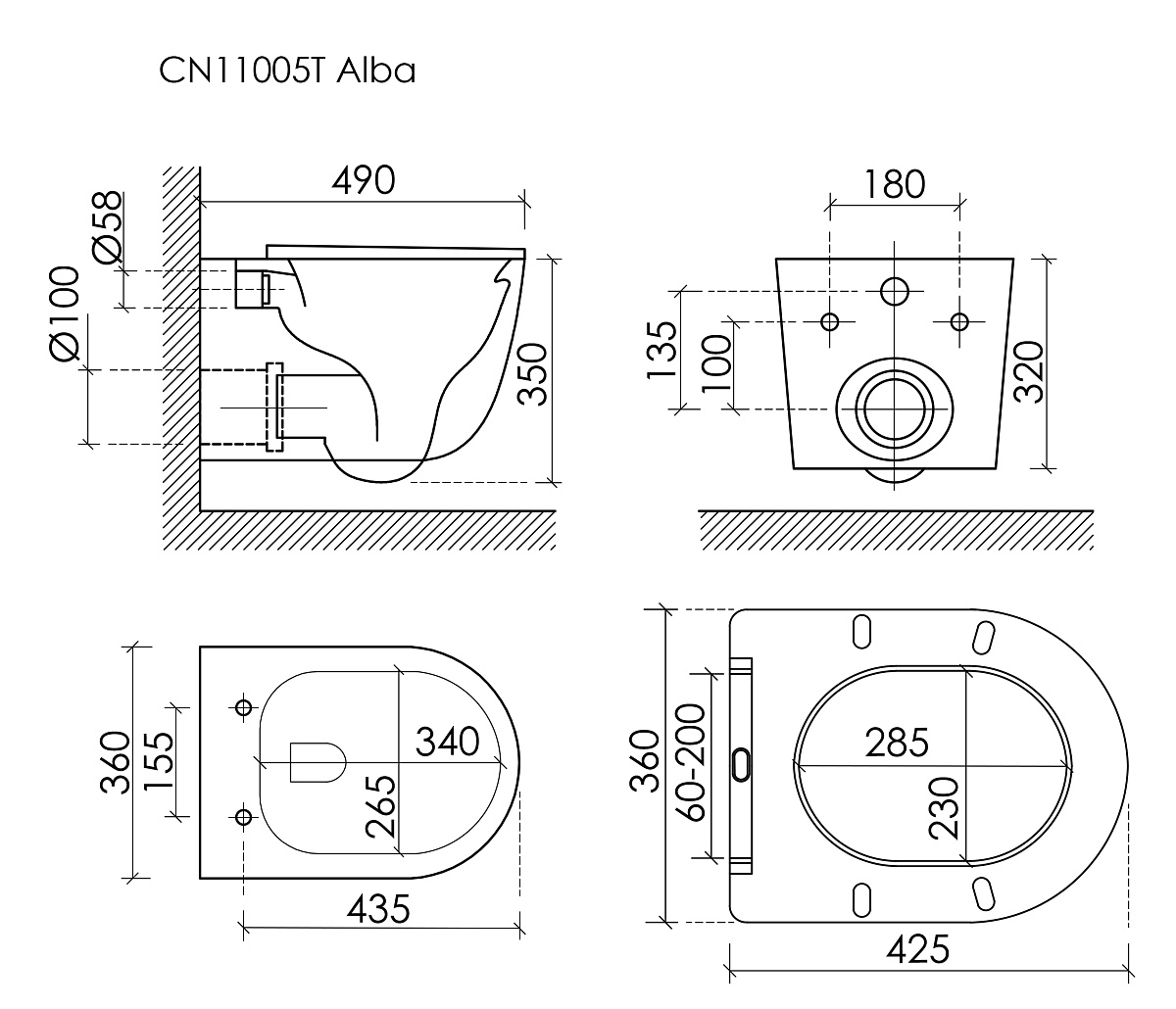 Ceramica Nova Alba CN11005T Унитаз подвесной с сиденьем