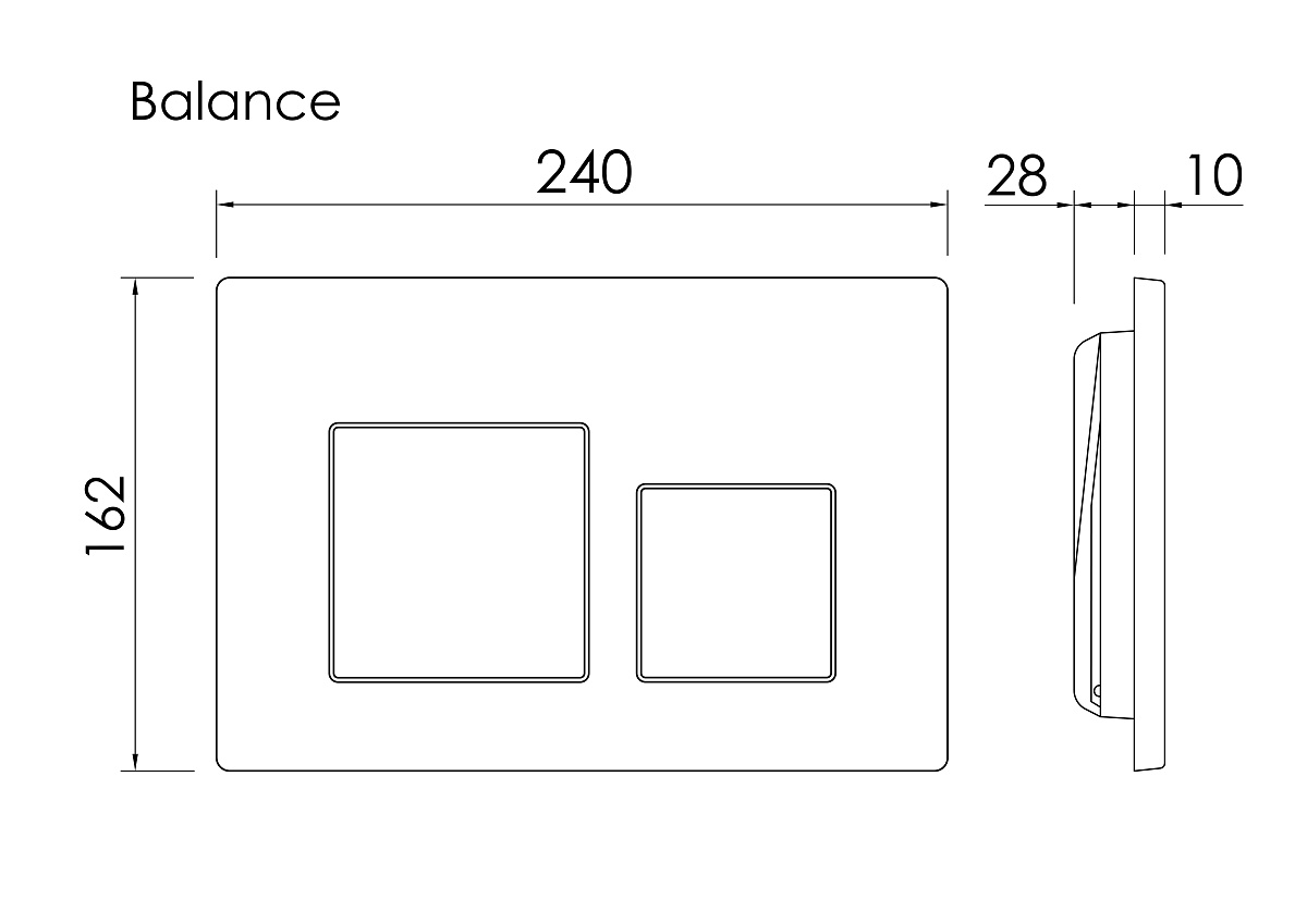 Панель смыва, материал - пластик Две кнопки смыва – для полного и частичного слива бачка Подходит только для инсталляции Balance CN121001 Надежное покрытие методом электроплейтинга