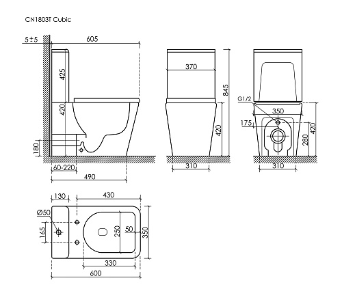 Ceramica Nova CUBIC CN1803T-B Чаша напольного унитаза