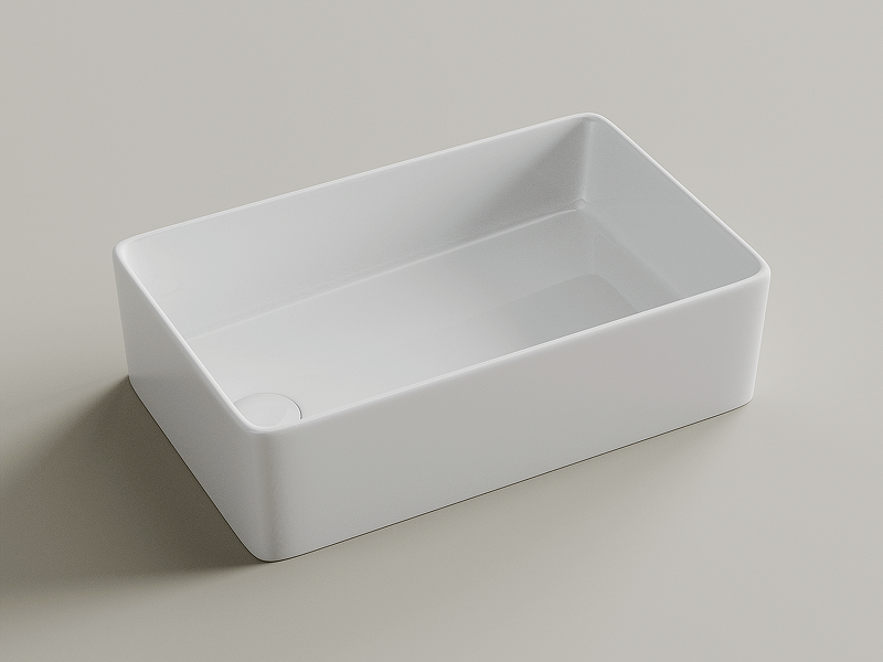Раковина накладного монтажа со смещенным сливом. Донный клапан в комплект не входит Без слива перелива.